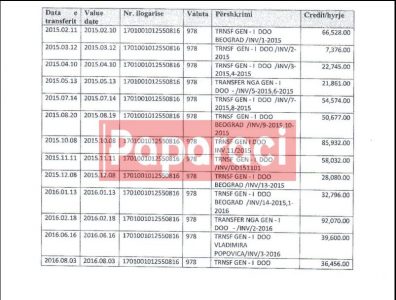 Paratë në xhirollogarinë e Berishajt janë dorëzuar më 16 qershor, 2016 nga Vladimir Popovic, i cili figuron si drejtor menaxhues i kësaj ndërmarrjeje.