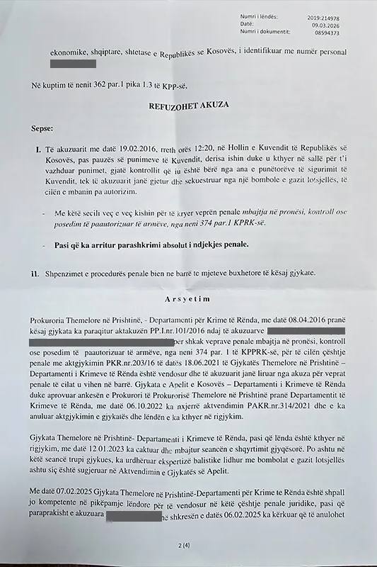 Në vendimin e gjykatës thuhet se ku vendim është marrë pasi që është arritur parashkrimi absolut i ndjekjes penale, transmeton Periskopi.