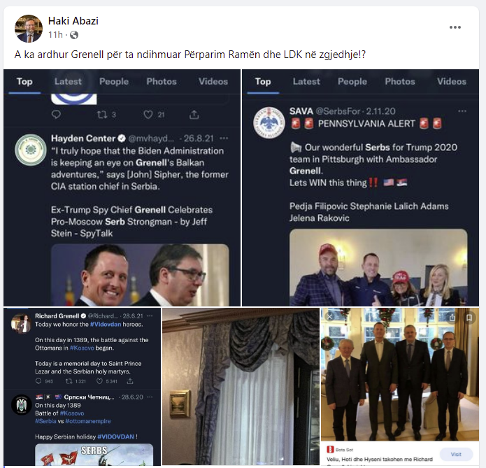 Kujtojmë që pikërisht konspiracionet mbi Grenellin i kishte shfrytëzuar Haki Abazi për ta dëmtuar LDK-në në të kaluarën.