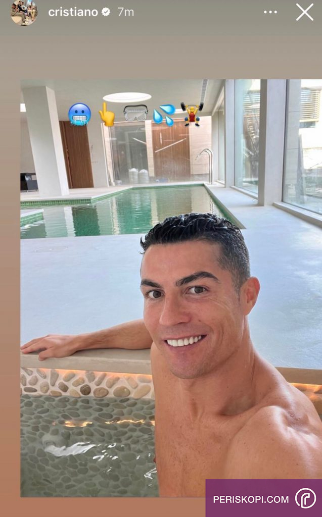 Por, Ronaldo sapo ka publikuar një fotografi në instagramin, ku shihet duke u relaksuar në një pishinë të brendshme që duke të jetë në shtëpinë e tij.
