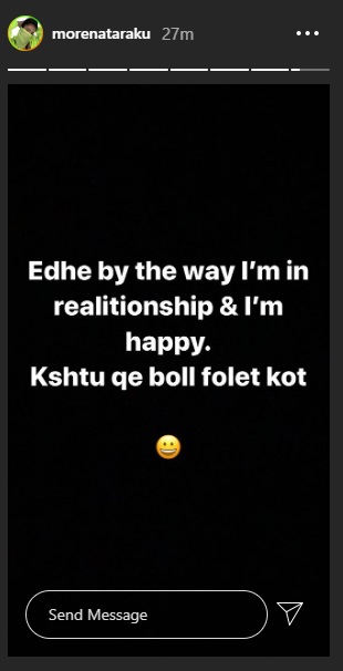 Këtë e ka bërë të ditur vetë në Instagram ku shprehet: ‘Edhe meqë ra fjala, jam në një lidhje dhe jam e lumtur. Kështu që boll folet kot’.