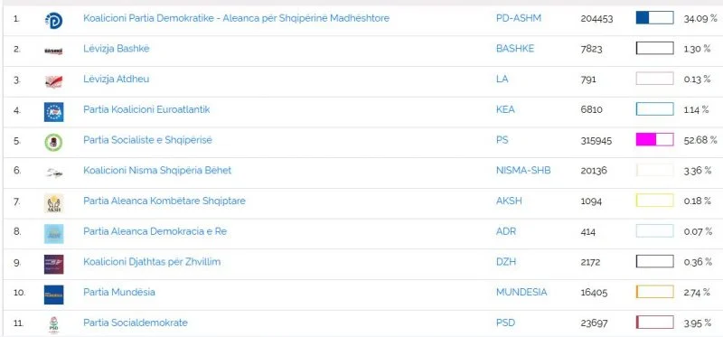 Kështu socialistët kanë deri tani 83 mandate, ku rezultatin më të mirë e kanë në Tiranë, Fier, Durrës dhe Elbasan.