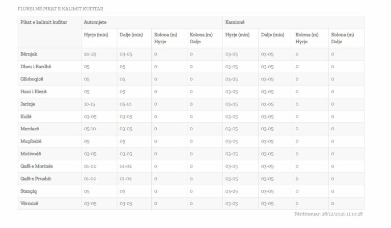 Përditësimi i fundit – Kaq janë pritjet në pikat kufitare për të hyrë në Kosovë