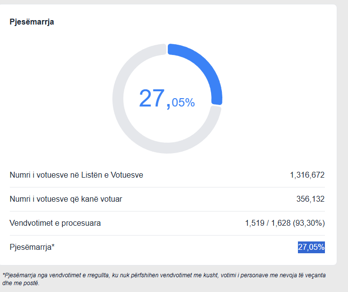 Pjesëmarrja deri më tani në nivel vendi është 27,05%.