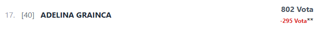 Në vendin e dytë është, Adelina Grainca, të cilës i janë hequr 295 vota.
