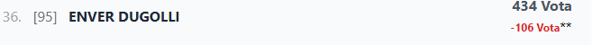 Në vendin e tretë është, Enver Dugolli, të cilit i janë hequr 106 vota.