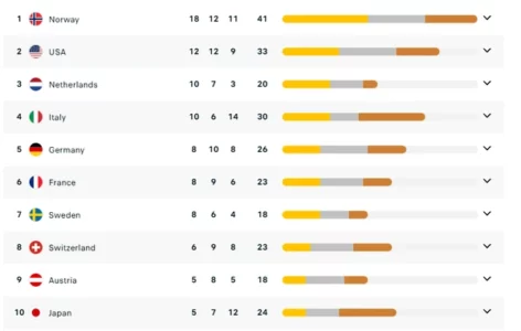 Me plot 18 medalje të arta, 12 të argjendta dhe 11 të bronzta, Norvegjia është vendi më i suksesshëm i “Milano Cortina 2026”. Ky është rekordi i katërt rresht për Norvegjinë, ndërsa me 18 të arta ata vendosën edhe një rekord të ri olimpik, duke thyer rekordin e mëparshëm prej 16 medaljesh të arta katër vjet më parë.