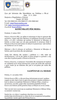 “Andaj këto shkrime dhe njoftimi i publikuar si i tillë, është një dezinformacion i cili ka për qëllim të krijojë pasiguri te qytetarët e asaj zone dhe të njollosë punën e Policisë së Kosovës” , thuhet në reagimin e PK-së.