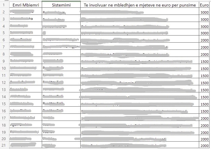 Për shkak se është vetëm një pretendim për marrje ryshfeti që po trajtohet nga hetuesit, Periskopi i ka fshirë emrat e personave në listë.