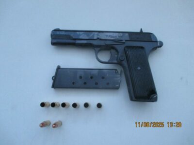 Janë sekuestruar një pistoletë, një karikator, 2 fishekë dhe 6 gëzhoja të kalibrit 7.62 mm. Rasti është iniciuar për “Mbajtje të paautorizuar të armëve” dhe “Shkaktim të rrezikut të përgjithshëm”, përderisa i dyshuari është dërguar në mbajtje për 48 orë.