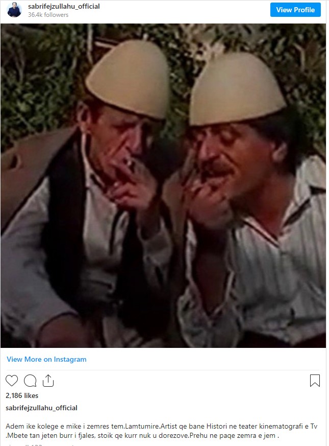 Sabri Fejzullahu, ka publikuar një fotografi, të shkrepur gjatë kohës kur kishte aktruar bashkë me Mikullovcin, ndërsa shkruan fjalë prekëse për të.
