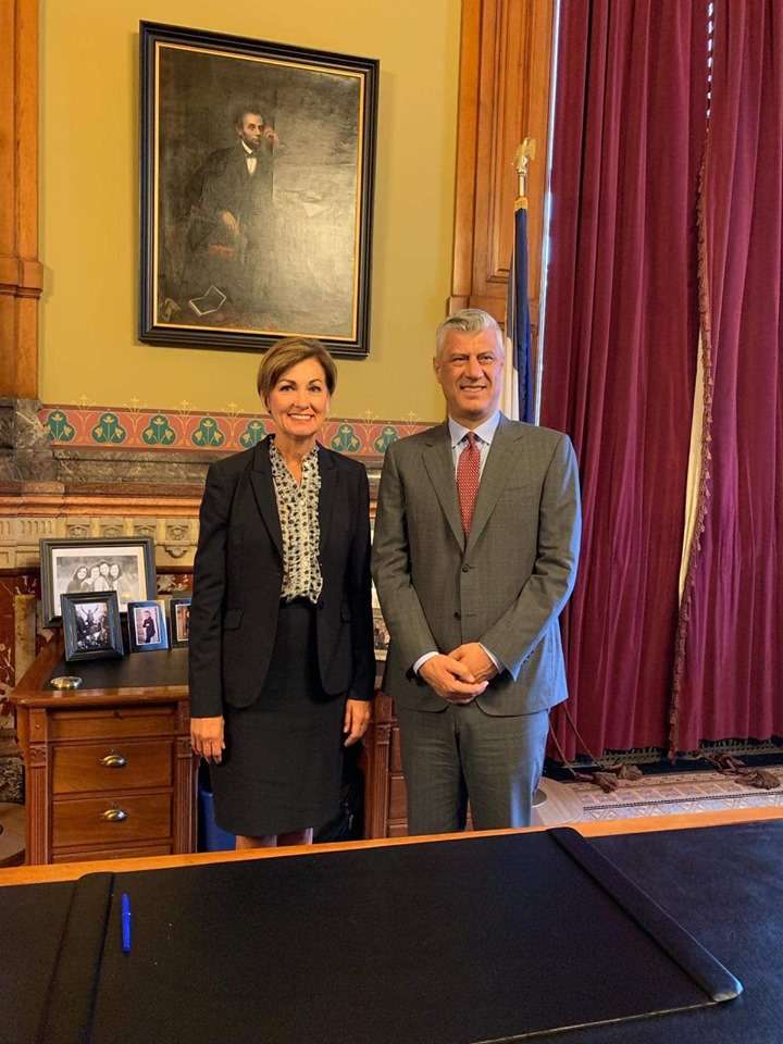 Thaçi atje ka takuar Guvernatoren Kim Reynolds, të cilën ka bërë të ditur se e ka falënderuar për përkrahjen e vazhdueshme që ky shtet i ka ofruar Kosovës, njofton Klan Kosova.