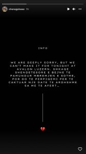 Përmes një postimi në Instagram ajo tha se i vjen shumë keq për anulimin, por do të punojnë ta bëjnë një datë tjetër në një moment të afërt.