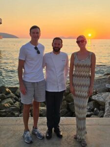 Në fotografinë që kanë shkrepur në bregdetin e Vlorës, çifti shfaqet në praninë e një prej kuzhinierëve që është edhe administrator i një subjekti në Lungomare.