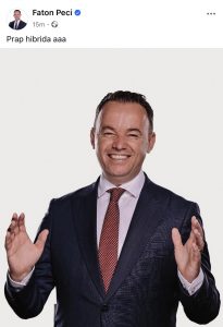 “Prap hibrida aaa”, shkroi Peci krahas fotos.
