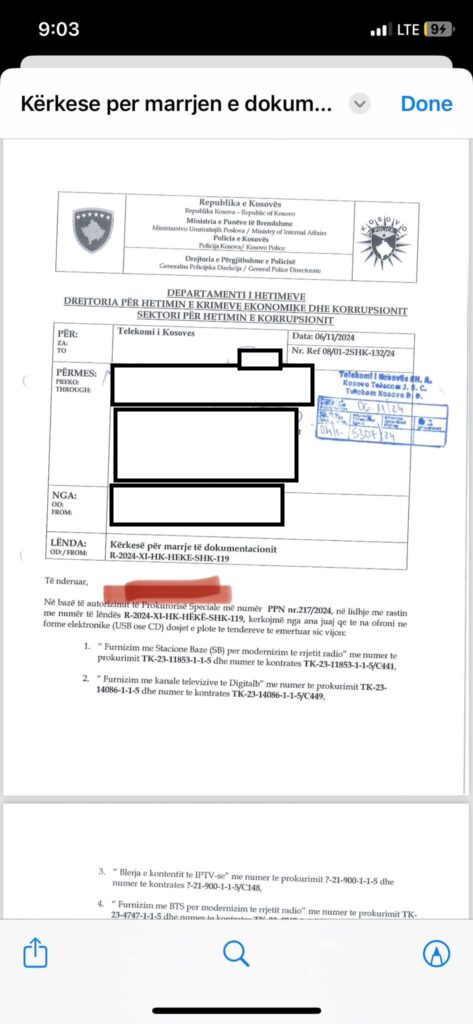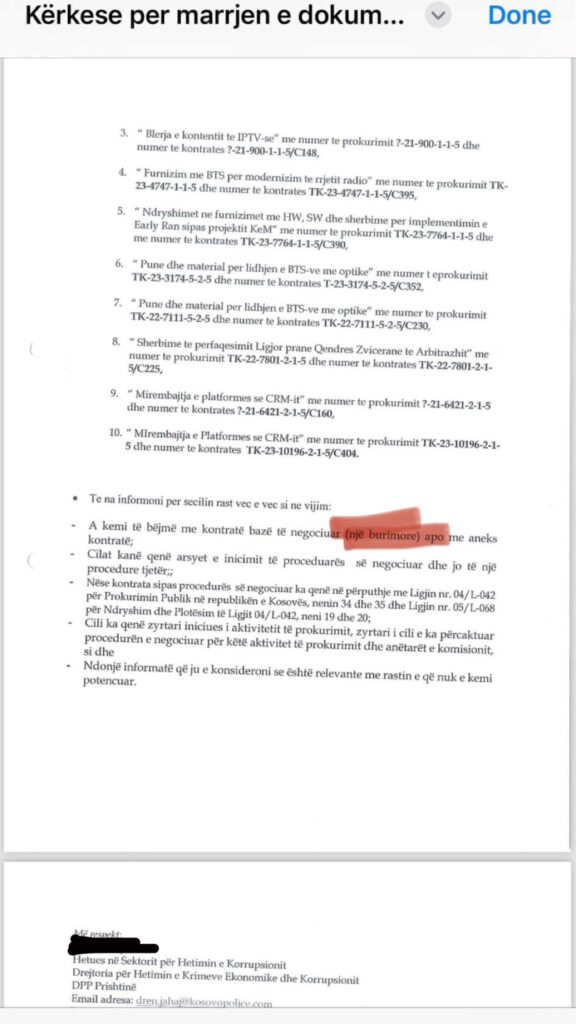 Prokuroria Speciale e Kosovës më 6 nëntor ka kërkuar nga Telekomi i Kosovës që të rrëfehet për disa kontrata të negociuara ose thënë ndryshe kontrata njëburimore.