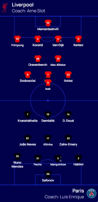 PSG – Liverpool, formacionet zyrtare