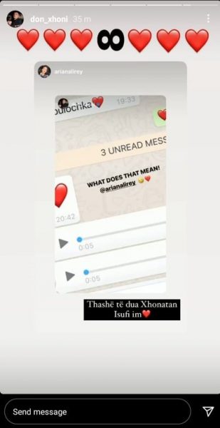 Në audio dëgjohet modelja duke i thënë: “të dua Xhonatan Isufi im” në gjuhen ruse”.