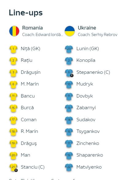 Publikohen formacionet zyrtare: Rumania – Ukraina