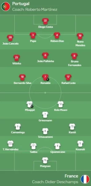 Publikohen formacionet zyrtare të ndeshjes Portugali – Francë