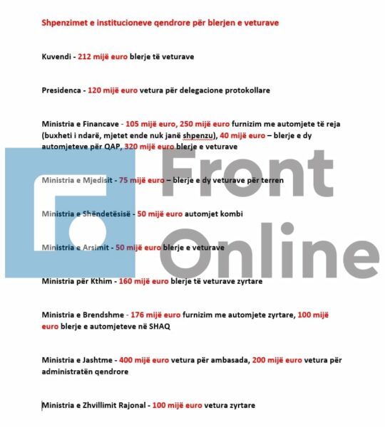 Shpenzime më të mëdha për blerjen e veturave gjatë këtij viti kanë bërë: Ministria e Financave dhe Ministria e Jashtme, raporton FrontOnline, transmeton Periskopi.