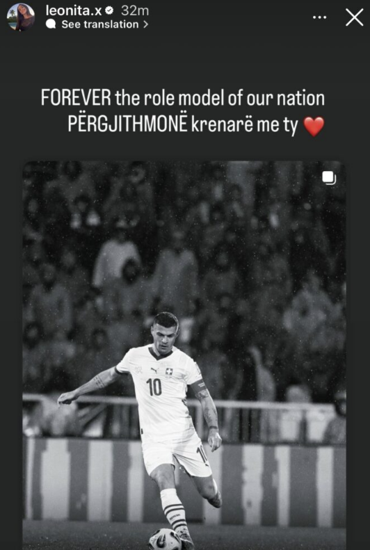“Përgjithmonë modeli ynë i kombit. Përgjithmonë krenar me ty”, shkroi ajo, duke shprehur mbështetje të plotë për kapitenin e Zvicrës./Periskopi/