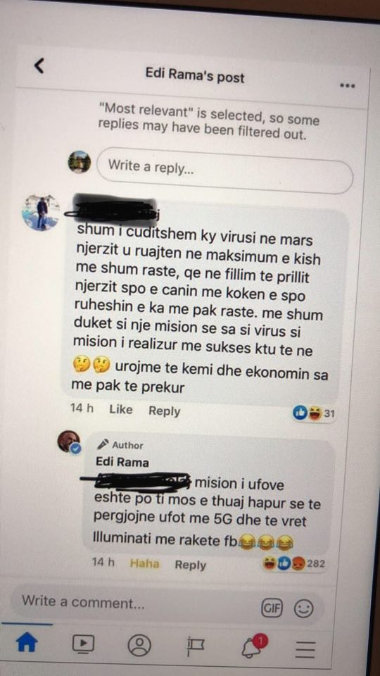 Kryeministri i Republikës së Shqipërisë, Edi Rama, njihet gjerësisht për stilin e tij të komunikimit të publikt që përfshin edhe replikimin direkt në komente me qytetarët e thjeshtë që i komentojnë në postimet e tij në Facebook. Kësaj here, reagimi i tij ndaj një konspiracioni është epik.