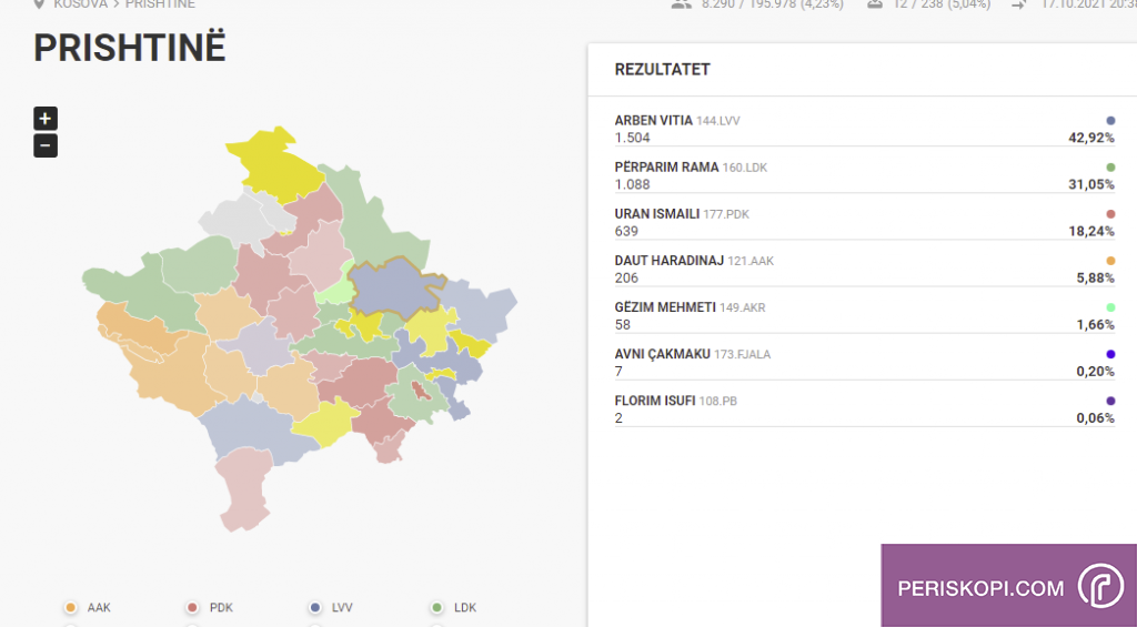 Rezultatet në Prishtinë po publikohen me ritëm më të ngadaltë se në shumicën e komunave të tjera me vetëm 5.04 për qind të votave të numëruara.