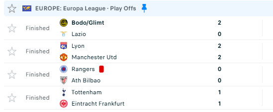 Me barazim janë mbyllur edhe dy ndeshjet tjera, Rangers – Bilbao 0 me 0, si dhe Tottenham – Frankfurt 1 me 1.