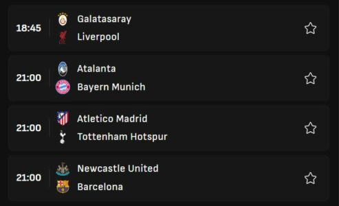 Tri prej ndeshjeve të sontme do të nisin prej orës 21:00 dhe një tjetër prej 18:45.