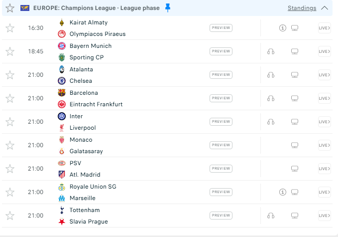 Nëntë ndeshje do të jenë sonte në program, shtatë nga ora 21:00, një nga ora 16:30 dhe një tjetër nga ora 18:45.