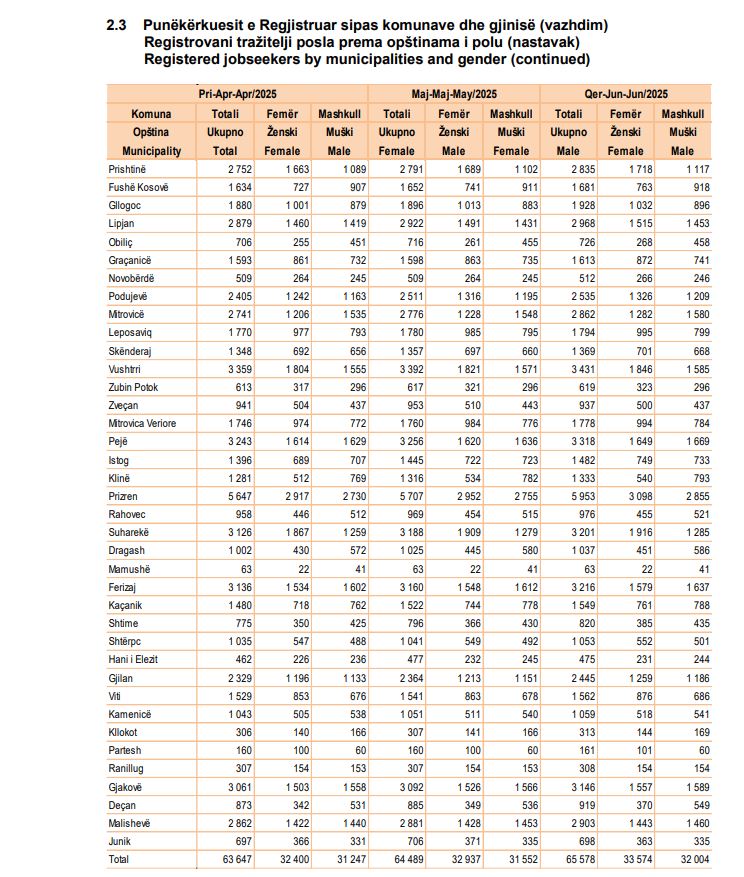 Sipas të dhënave të fundit të Agjencisë së Statistikave të Kosovës, aktualisht në vend janë të regjistruar 69 mijë e 751 punëkërkues.