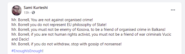Mr. Borrell, you must not be enemy of Kosova, to be a friend of organised crime in Balkans!
