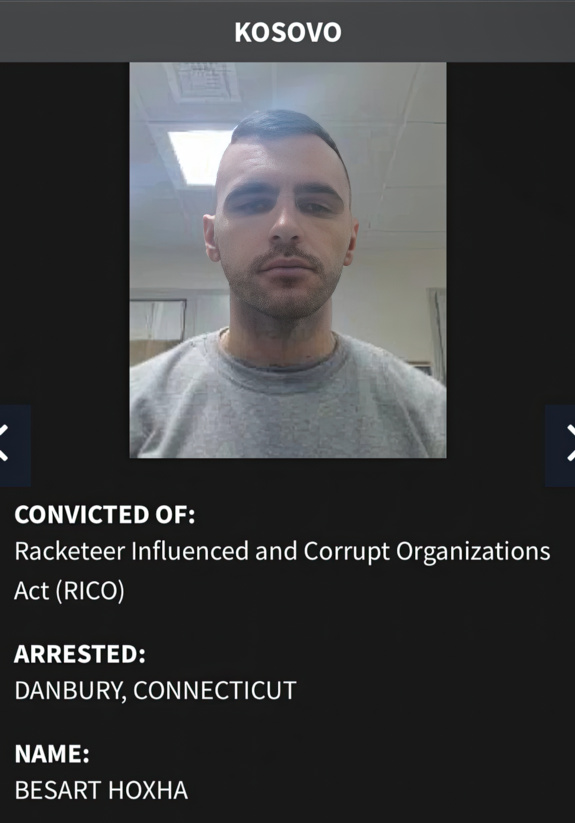 Besart Hoxha, nga Kosova, i hetuar për përfshirje në organizata kriminale sipas ligjit RICO.