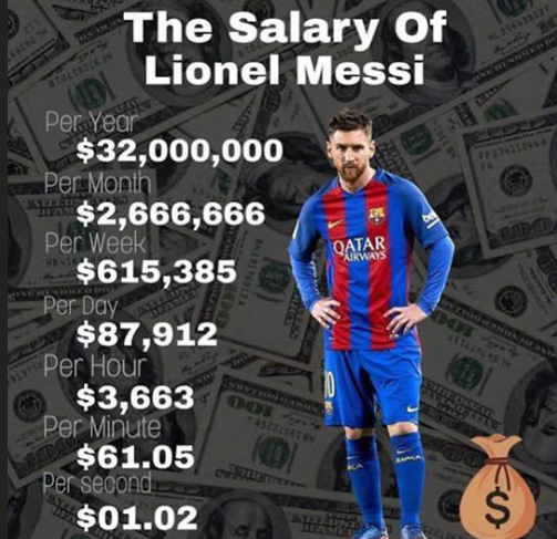 Sidoqoftë, Periskopi jua përcjell të ardhurat e argjentinasit, kjo madje duke përllogaritur edhe çmimin e tij për sekonda, publikuar nga tabloidi i njohur britanik Soccersalary. /Periskopi.com/