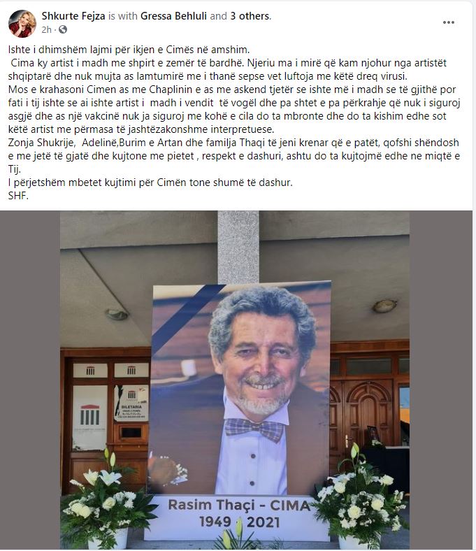 Shkurte Fejza shpreh ngushëllime për vdekjen e Cimës: Nuk munda t’i them lamtumirë sepse vet po luftoja me këtë ‘dreq’ virusi