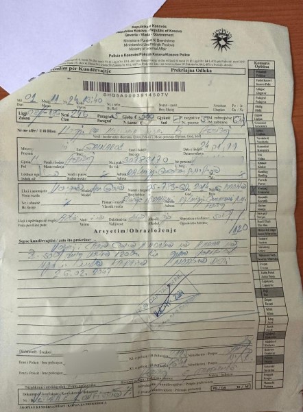 Gjoba, e cila është shqiptuar më 1 nëntor të këtij viti, dëhmon se shoferit i është konfiskuar edhe automjeti.