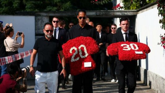Shokët e Jota-s nga Liverpooli marrin pjesë në funeralin e tij dhe të vëllait