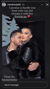 “Unë premtoj ta trajtoj zemrën tënde me kujdes dhe ta çmoj me dashuri @ selvije.jao”, ka shkruar ai.