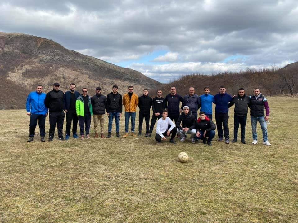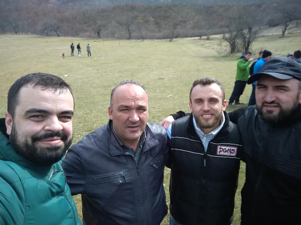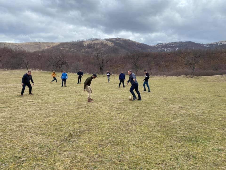 Shpejtim Bulliqi, kryetari i ri i Podujevës, duket se po kalon vikendin në një livadh të komunës duke luajtur një lojë që i ngjason futbollit.