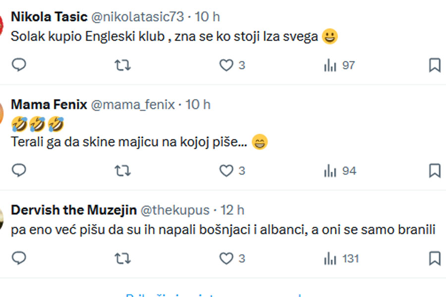 “Djali i babit nxiton të zihet me tifozët e Anglisë, por Kobrat nuk e lejojnë! Si baba si bir”, thuhet në komentin e X.