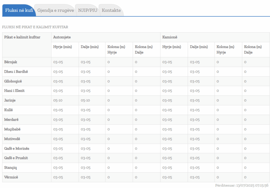 Sipas përditësimit të fundit të Qendrës Kombëtare për Menaxhim Kufitar nuk ka kolona në hyrje-daljet e pikave kufitare.