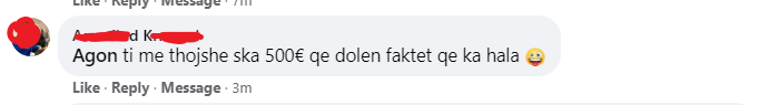 “Agon, ti më thojshe s’ka 500 euro – qe dolën faktet që ka hala.” – i ka shkruar ai.