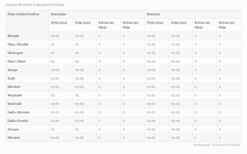 Më poshtë gjendja në të gjitha pikëkalimet kufitare.
