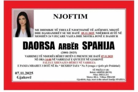 Sot varroset Daorsa Spahija, 25-vjeçarja nga Gjakova që vdiq mbrëmë në Tetovë të Maqedonisë së Veriut.