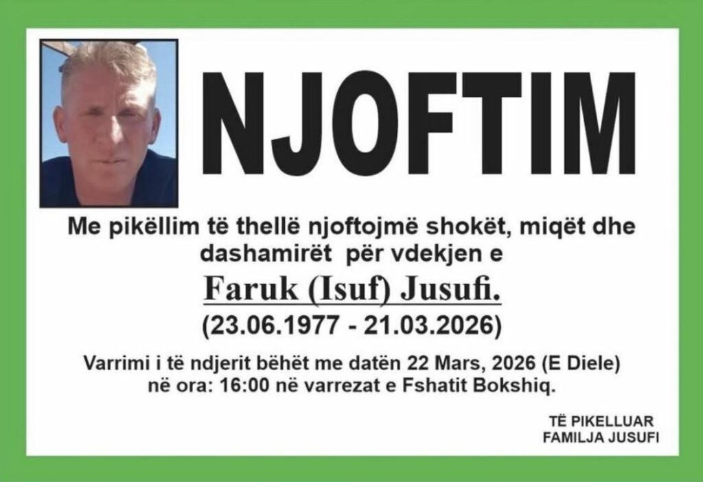 Kjo u bë e ditur nga fshati Bokshiq, ku thuhet se varrimi bëhet në ora 16:00, në varrezat e fshatit.