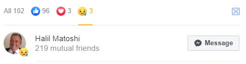 Pas këtij statusi ka reaguar edhe Halil Matoshi me një emotikon duke qarë.