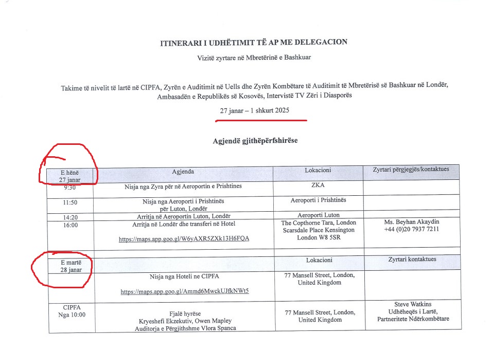 Stafi tjetër i delegacionit është kthyer në Prishtinë më 1 shkurt, ndërsa Auditorja e Përgjithshme është kthyer vetëm më 3 shkurt 2025, duke qëndruar shtatë ditw ditë në Angli, ose gjashtë ditë zyrtare (perjashtuar 27 shkurtin- ditën e arritjes), ndonëse në përgjigjen zyrtare ZKA flet për një agjendë pesëditore për të.
