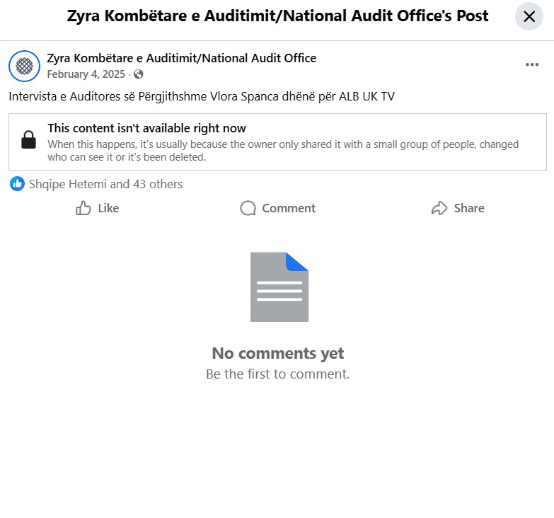 Intervista e Auditores, e cila është dërguar në linkun e bashkangjitur në përgjigje, aktualisht nuk figuron si e tillë në faqen zyrtare të ZKA-së. Nga verifikimi rezulton se videoja e intervistës është hequr.