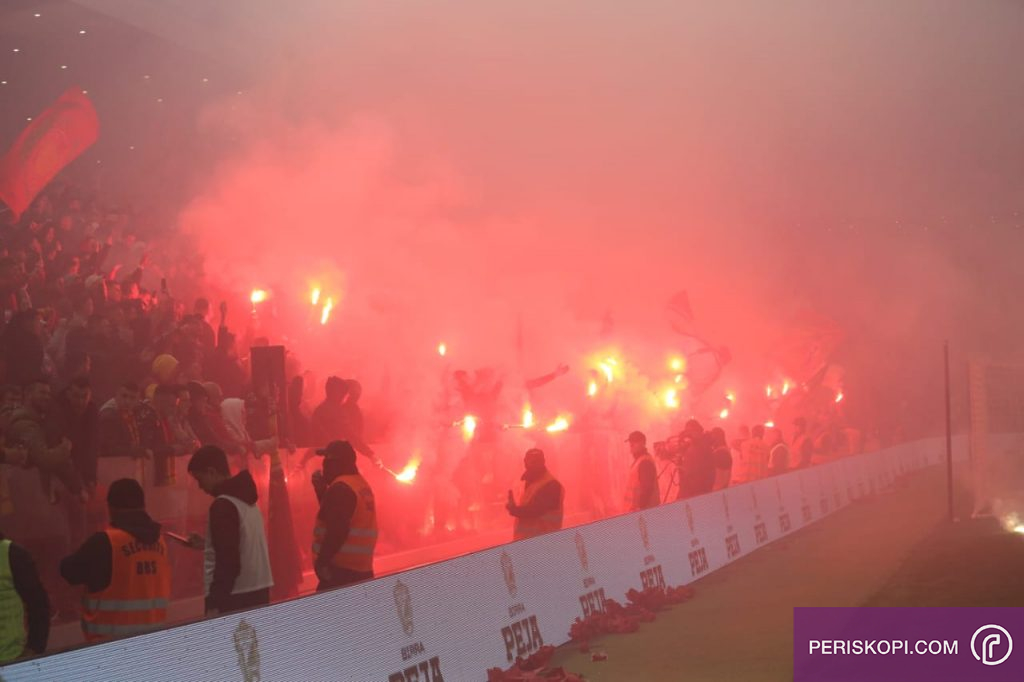 Qysh më të filluar ky derbi i madh kishte tenisone mes dy tifozerive, ku në minutën e 4 u ndërpre edhe ndeshja, pasi tifozët e Partizanit sulmuan portierin e Kombëtarës së Kosovës që luan për Tiranën, Visar Bekajn.